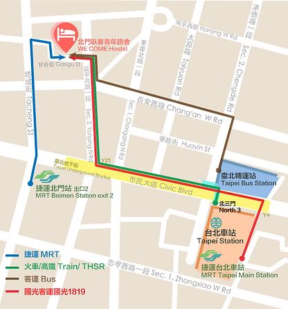 We Come Hostel is located in Central Taipei. Metro, railway, high speed rail, airport express station and bus terminal are within walking distance.